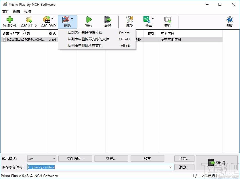 5、可从列表中删除所选文件、删除不支持的文件、删除所有文件